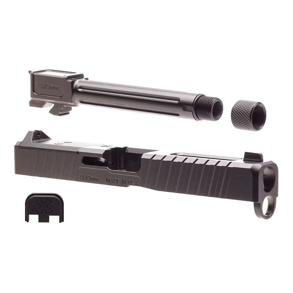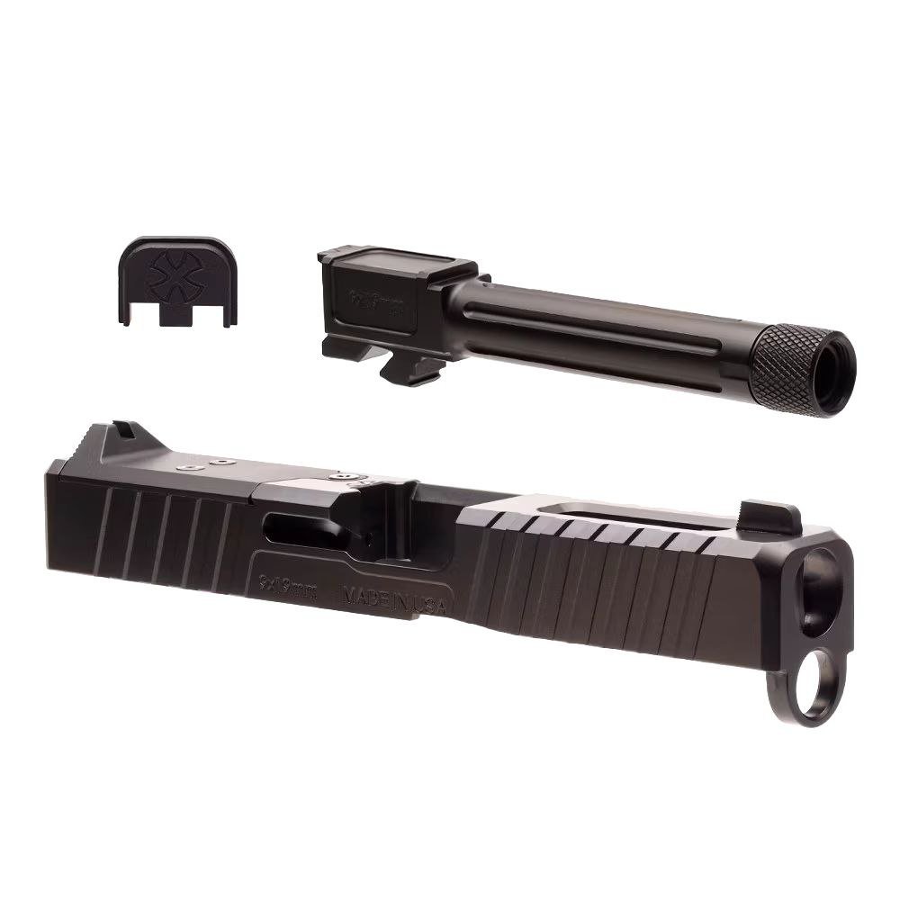- Enhanced Features: This set optimizes accuracy and improves handling. The slides feature aggressive serrations that offer superior grip, while the barrel enhances performance with precision engineering.